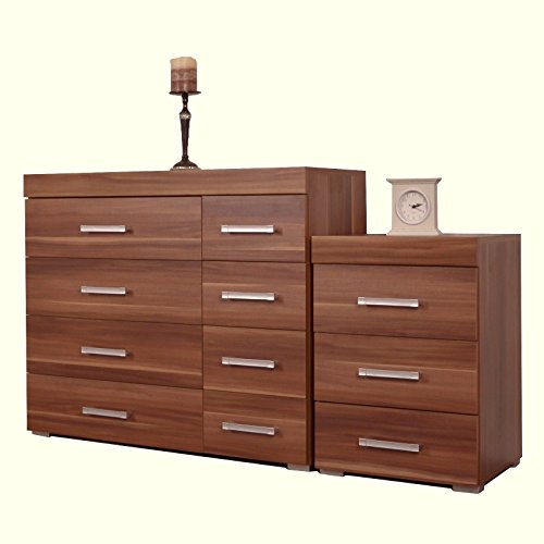“DP Walnut 4+4 Drawer Chest & 3 Draw Bedside Cabinet Bedroom Furniture” has been added to your cart. View cart