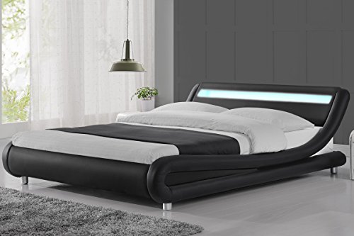 “Madrid Designer LED Lights Headboard Faux Leather Bed Frame Black, White or Black & White Single, Double or King Size (Double 4FT6, Black)” has been added to your cart. View cart