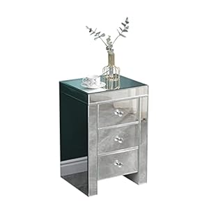 FurnitureHMD Mirrored Glass Bedside Table Chest of Drawers with Crystal Handles Home Storage Side Table for Bedroom,Living room,Office
