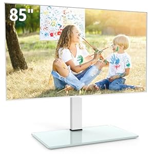 FITUEYES 50-85 inch Tabletop TV Stand, Stable TV Pedestal Stand with Height Adjustment, 80° Swivel & Tempered Glass Base, Holds 65kgs, Max VESA 800X600 mm White