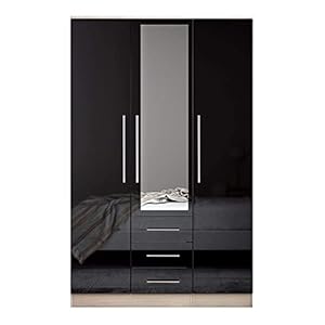 Unique Furnishings BLACK Gloss Combi 3 door 3 drawer mirrored wardrobe