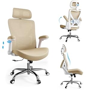 Ergalithic Office Home Ergonomic Desk Chair-Computer X-Shaped Chair Mesh PU Leather with Adjustable Lumbar Support-Executive Chair High Back with Headrest Flip-Up Arms for Long Hours