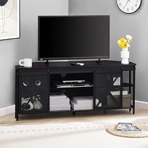 HOMISSUE Corner TV Stand for TVs Up to 60 Inch, TV Console Table with Storage Cabinets, Modern Corner TV Stand with Power Outlet, Industrial TV Stand with Sliding Door for Living Room, Bedroom
