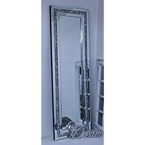 Biznest New Diamond Crush Crystal Large Sparkly Silver Wall Mirror 120X40Cm Living Room The World’S Largest Mirror Collection Of Biznest Store