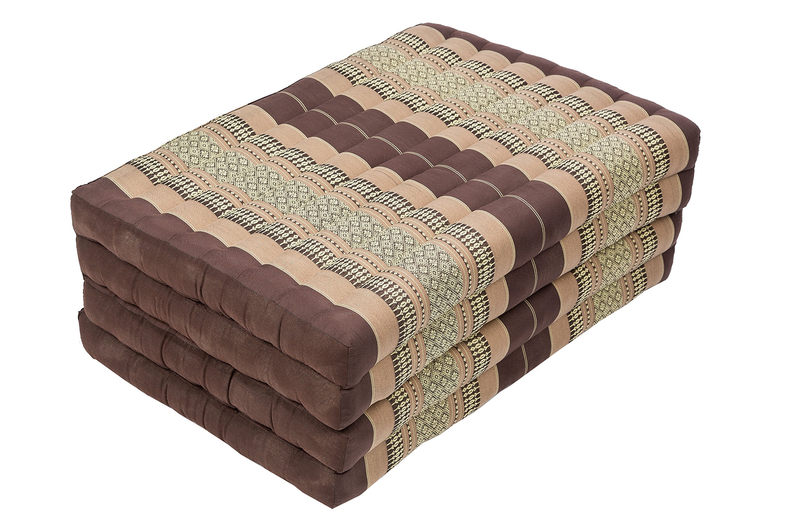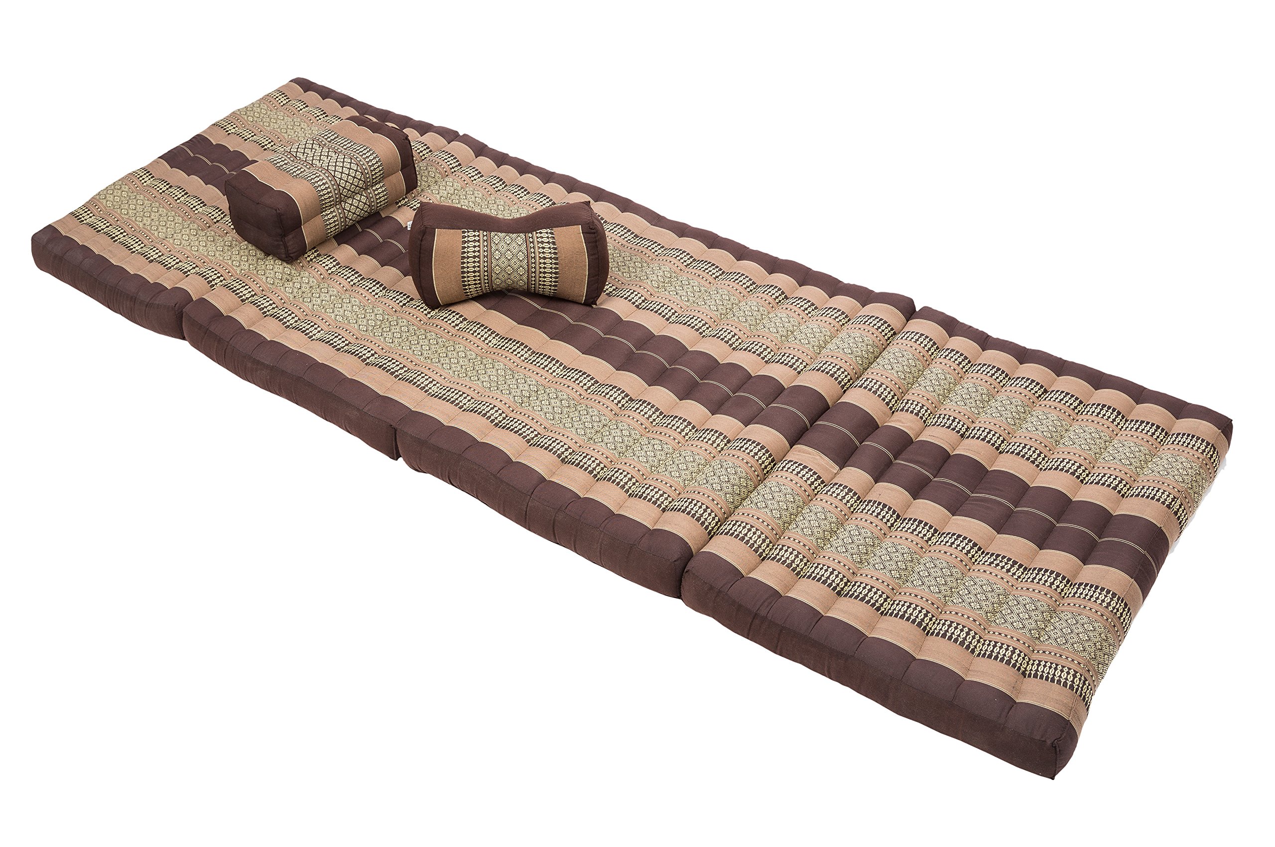 This 3-piece set includes the foldable Kapok-Mattress, and two matching smaller cushions. These comfortable cushions turn any space into a beautiful and relaxing sanctuary. And the mattress can be folded up and stored away easily.