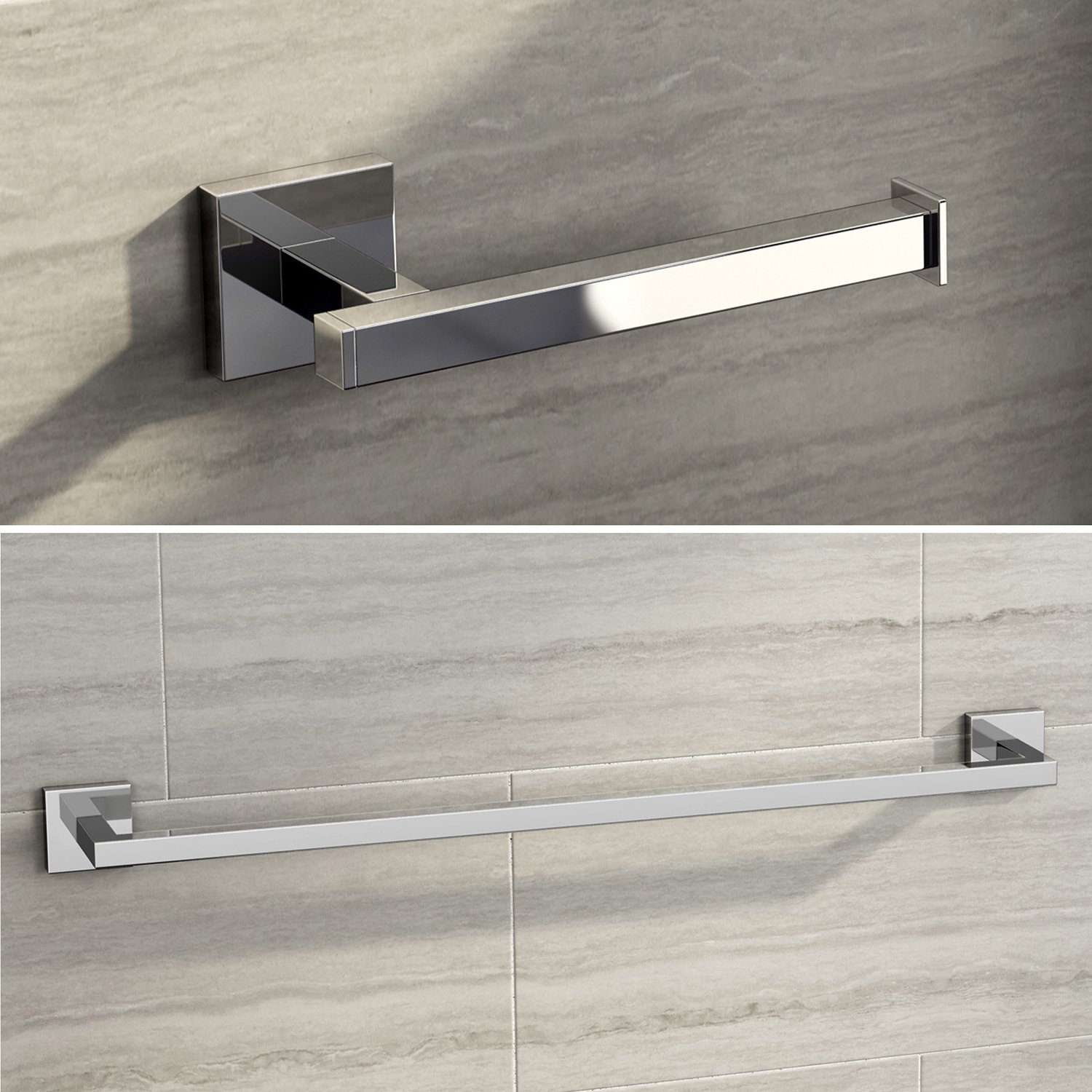 Complete your bathroom with our fine selection of bathroom accessories. This modern wall mounted six piece set is finished in high chrome, giving a luxurious appearance to any bathroom.