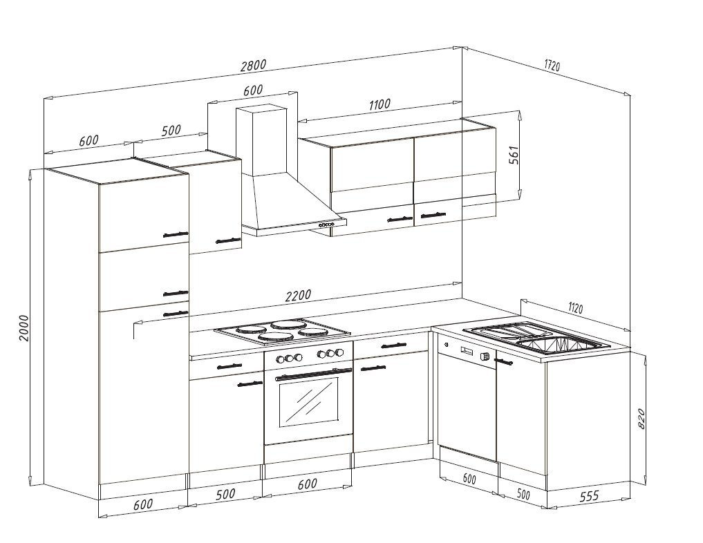 Respekta Economy L-Shape Corner Kitchen Oak Black 280X172 CM Designer Kitchen/Cooker Hood