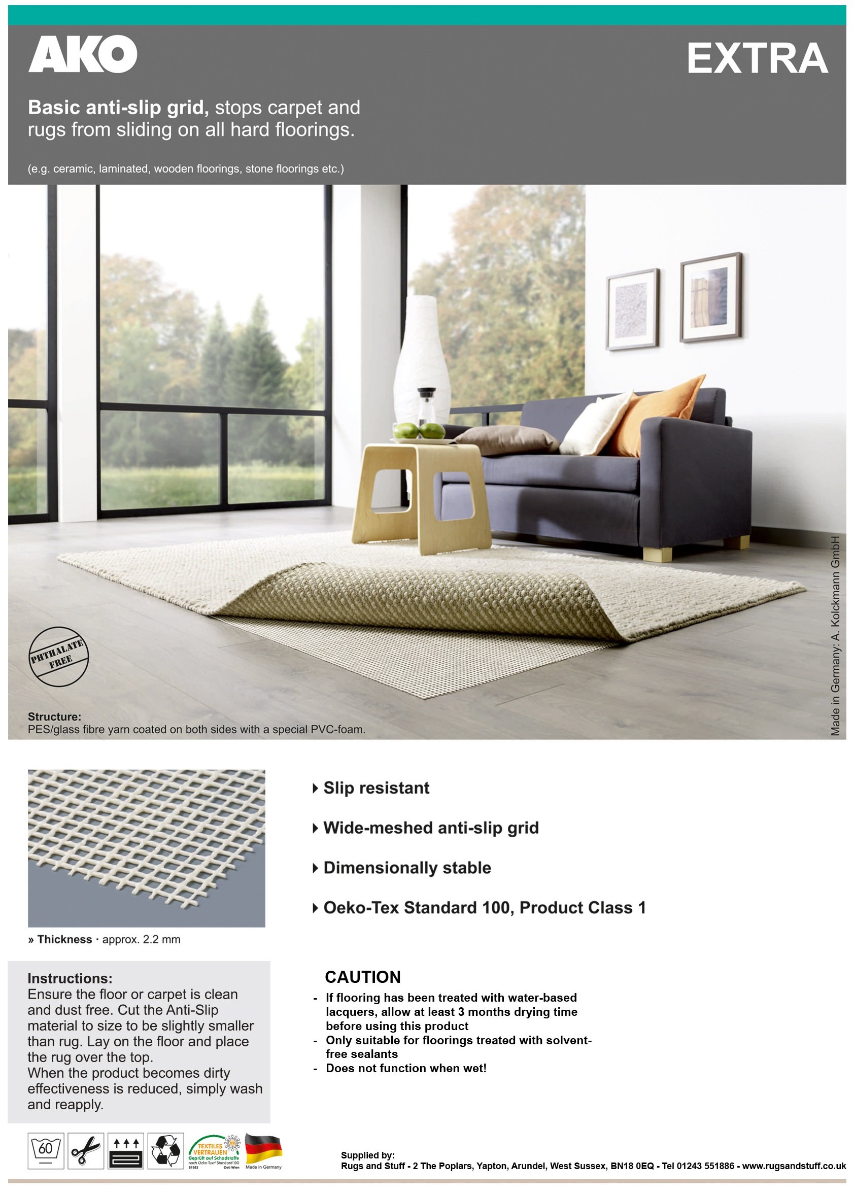 This specialist gripper underlay from Rugs and Stuff intended for use on hard floors offers a simple, effective and convenient anti-slip solution for preventing rugs from slipping and moving on all hard floor types, including laminates, wood, tiles and vinyl.
