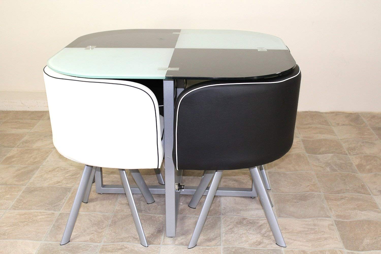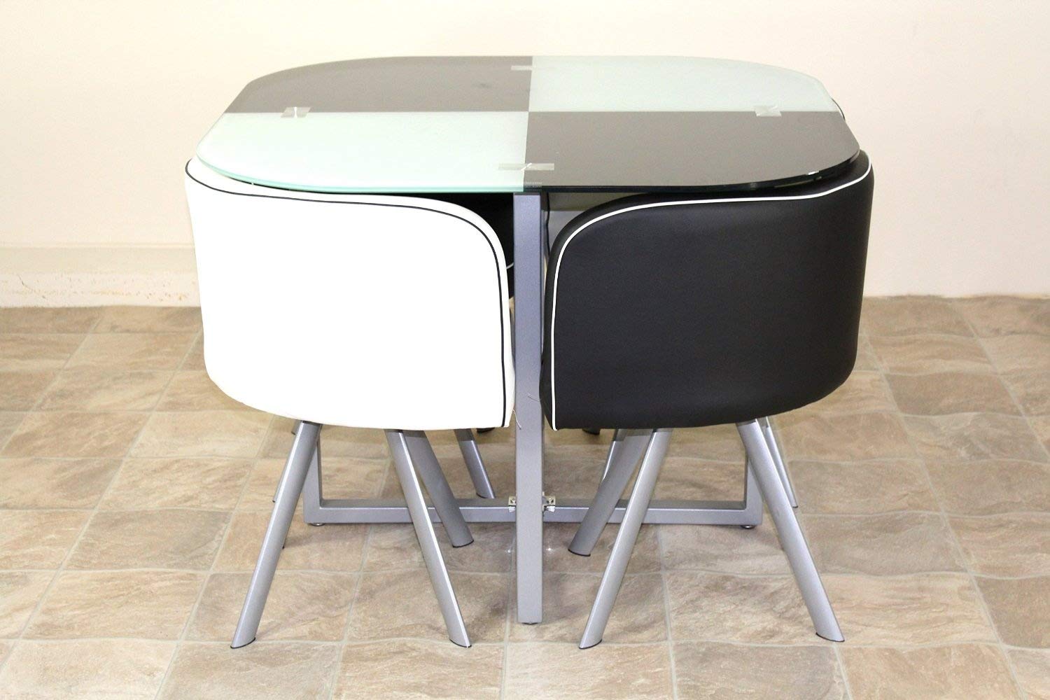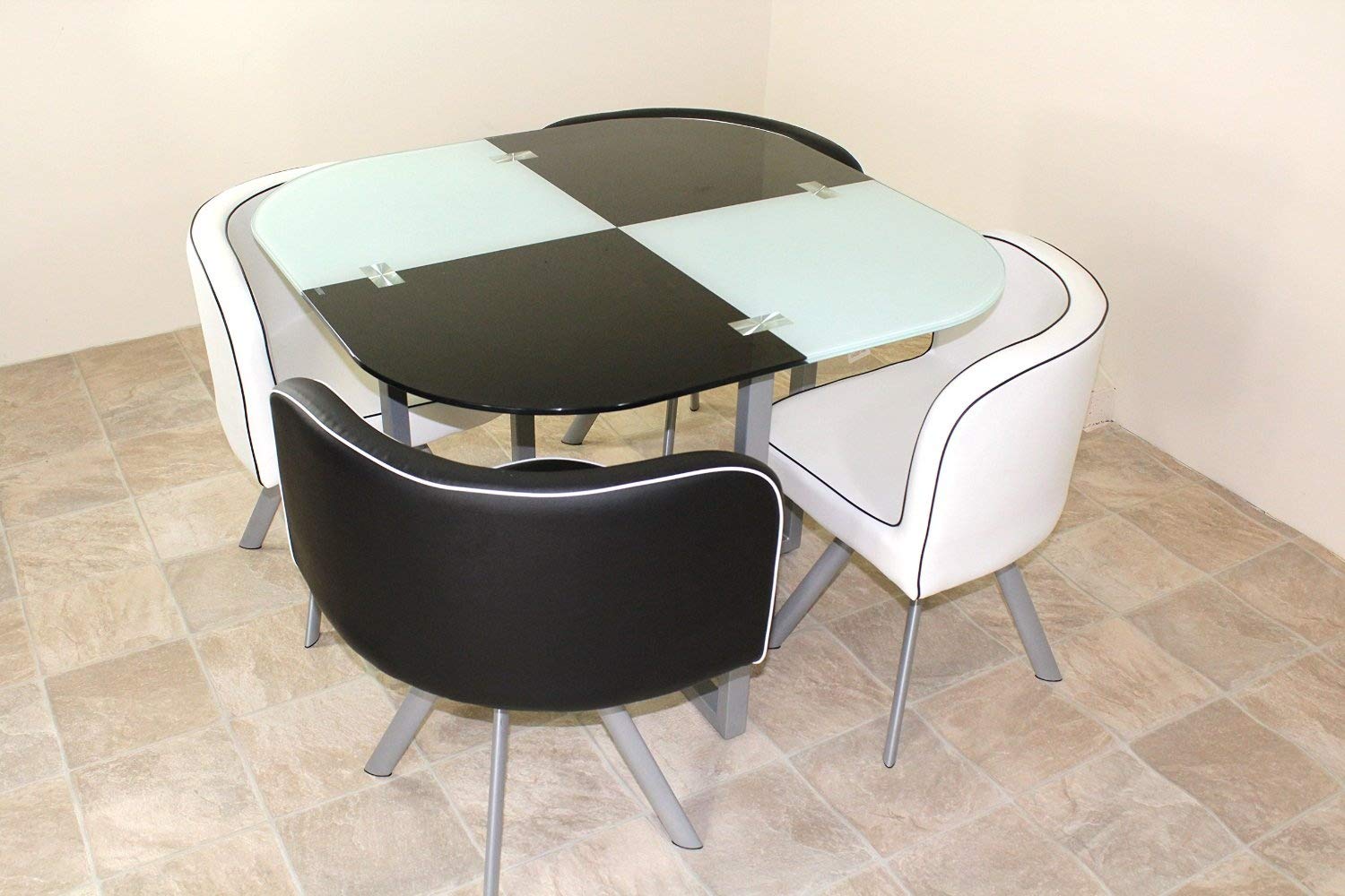 Spacer Saver Glass Table and Four Chairs Black and White