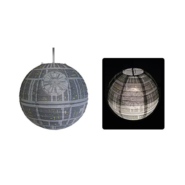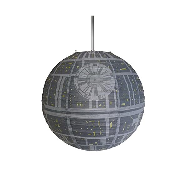 Star Wars Death Star Paper Light Shade – 45cmFans of the Galactic Empire will go space-station crazy over this Death Star Paper Light Shade! This collapsible light shade measures an impressive 45 cm in diameter (18″) and has a metal expander that fits onto a hanging light fixture. It is a licensed Disney Star Wars item. Warning: Not a toy. Keep away from young children.