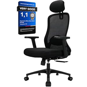 Durrafy Office Chair, Ergonomic Desk Chair with Adjustable Headrest, Lumbar Support and Armrest, High Back Ergonomic Office Chair with 90°-130° Tilt Function (Lockable), Computer Chair for Home/Office